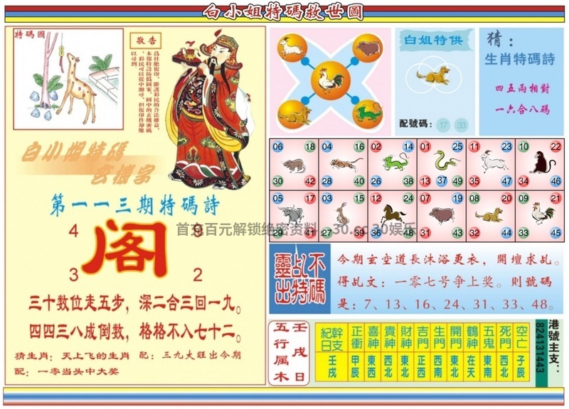 | 113期:平特一尾【3333尾】开:蛇13中 |